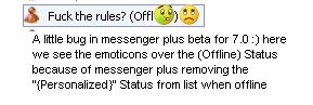 msgerplus hides the {Personalized} from the nick of the offline user and if he has emoticons in status like: {Personalized  }