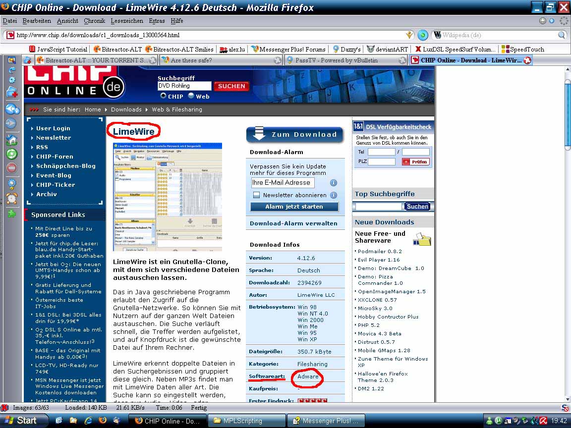 ill make a screenshot from a very good and respected german computer-site where you can get limewire. and they say its adware. i trust them cuz they know what they talk about.