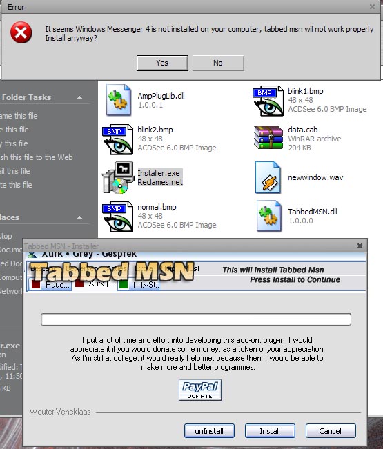 I can't install tabbed MSN. When I am trying to install then I'm getting this message (*Attached Image).