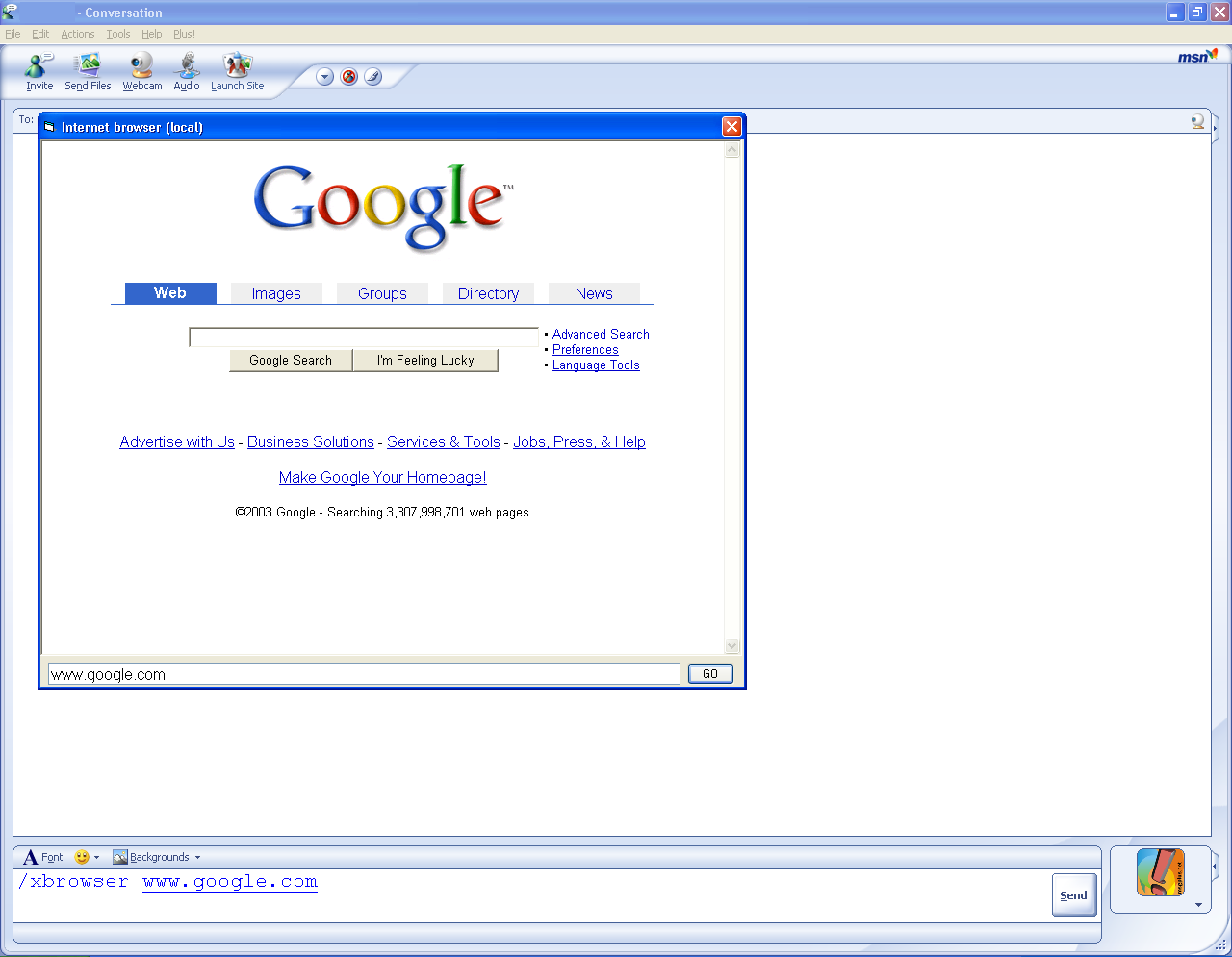 yeah, i dont know how i could fix that. but i noticed that with the stuffplug pager u can chat while its open :rolleyes:. if any1 knows how i could do that plz reply, but i dont know if i'll include it cos the command that tells ur contact the url doesnt get sent until u close the window :undecided: (but maybe if it would be possible to chat while the window is open, then the command would get sent too :P) if not, your idea would be great for local browsing though (Y).