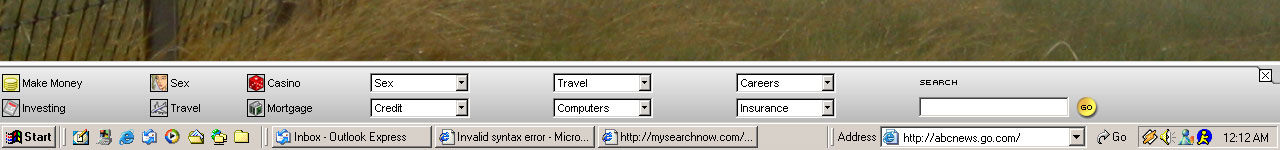 When I open IE, a search bar is added to the Windows Task Bar that includes two sex links. I have attached a JPG screen shot of this bar. (If the attachment isn't available please visit http://meaty.bravehost.com/mysearchbar_01.jpg)