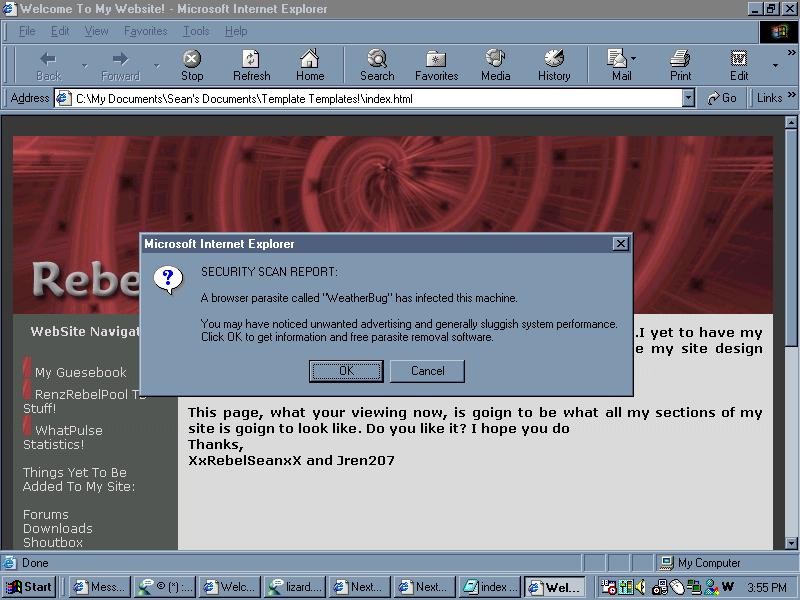 Look at that screenie, was lookin at a site and found a free website counter( yes as the screenie looks I am re-designing my site with crazyclown and jren207  )..Well I found it and put it in a .html and then it does this..Why dont it prompt me for it to scan? Isn't that illegal to do that and it dont promt you to ask if it can scan your computer?