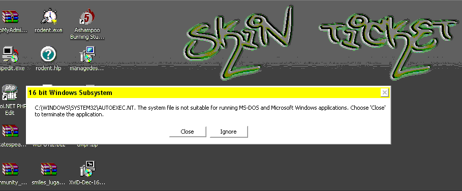 I get thsi stupid error message when I try running Rodents Revenge or Jezzball, does anyone know where I can get versions that run on my 32 bit NT system, or know how to make the games compatible....?I had to save it was a shitty quality tho....(the image)