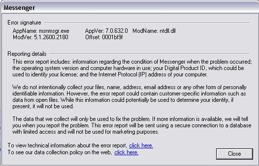 AppName: msnmsgr.exe        AppVer: 7.0.632.0    ModName: ntdll.dll