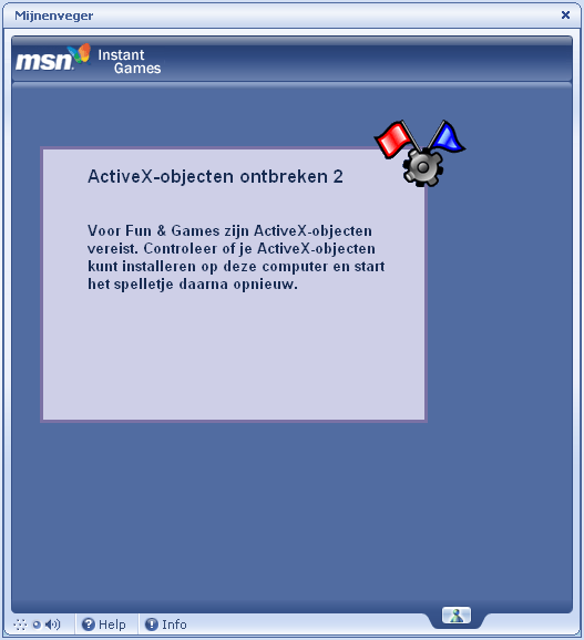 Voor Fun & Games zijn ActiveX-objecten vereist. Controleer of je ActiveX-objecten kunt installeren op deze computer en start het spelletje daarna opnieuw.