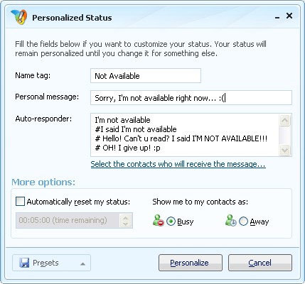 Also, it might be useful to know that you can set multiple auto-messages, which, in my opinion, are GREAT!