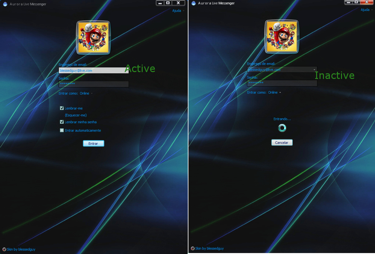 Hey iŽve seen something that could be useful (only if you can help me) in this situation, well as you can see on your own wlm when the connect button is pressed, the mail an password boxes turn their background to transparent and their foreground to a pale greed, so i was thinking if the "state pale greed" could be changed to transparent color, these items would virtully dissapear (which i am looking for), but I donŽt know where is defined this state (so I could replace the greed color to transparent), but all of this could be possible only if the transparent color is able to be set (is it possible?), well Basilis and Vaccination I hope you could guide me since it could be much easier than the other idea,(guess (Smilie)), thanx