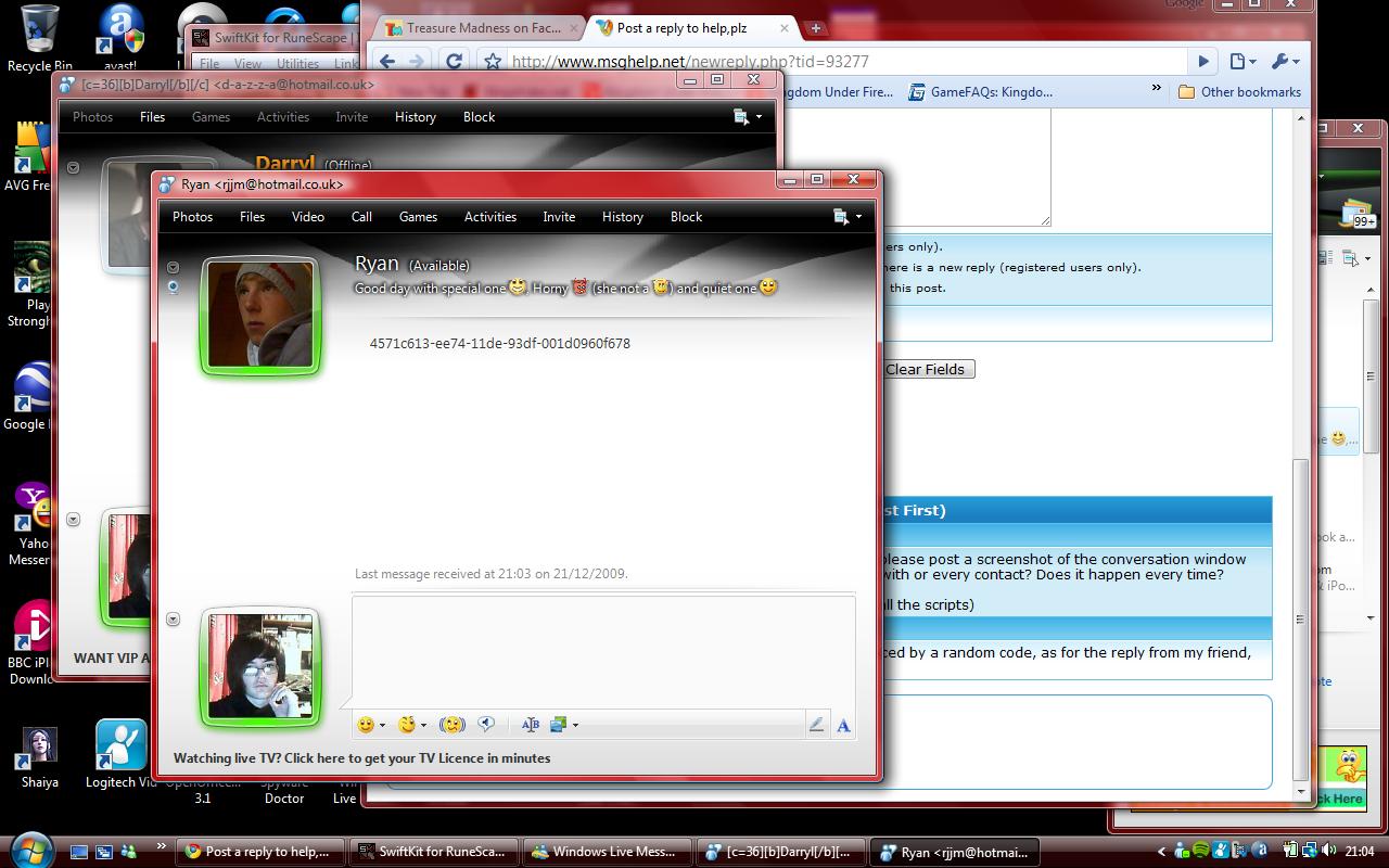 when i IM someone, it will stay thr for a second or so and then be replaced by a random code, as for the reply from my friend, can ne1 help plz?