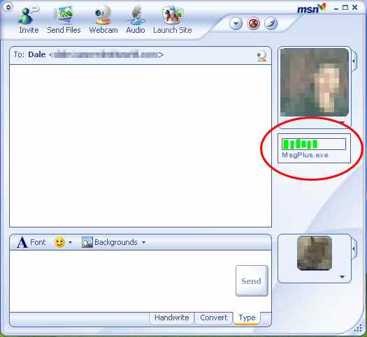 about that status bar...it's definately better in MSN messenger 6, it was disturbing having it down there so you wouldn't know wheter your friend was typing or not, also you couldnt know how many bytes were left, but on the other hand it had the advantage of not having to scroll in order to find it!!! a status bar halfway between both would be perfez..in all that space that's of no use right know under your contact's image