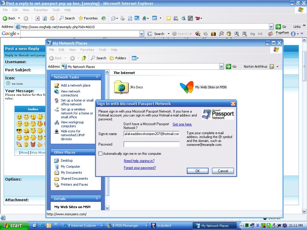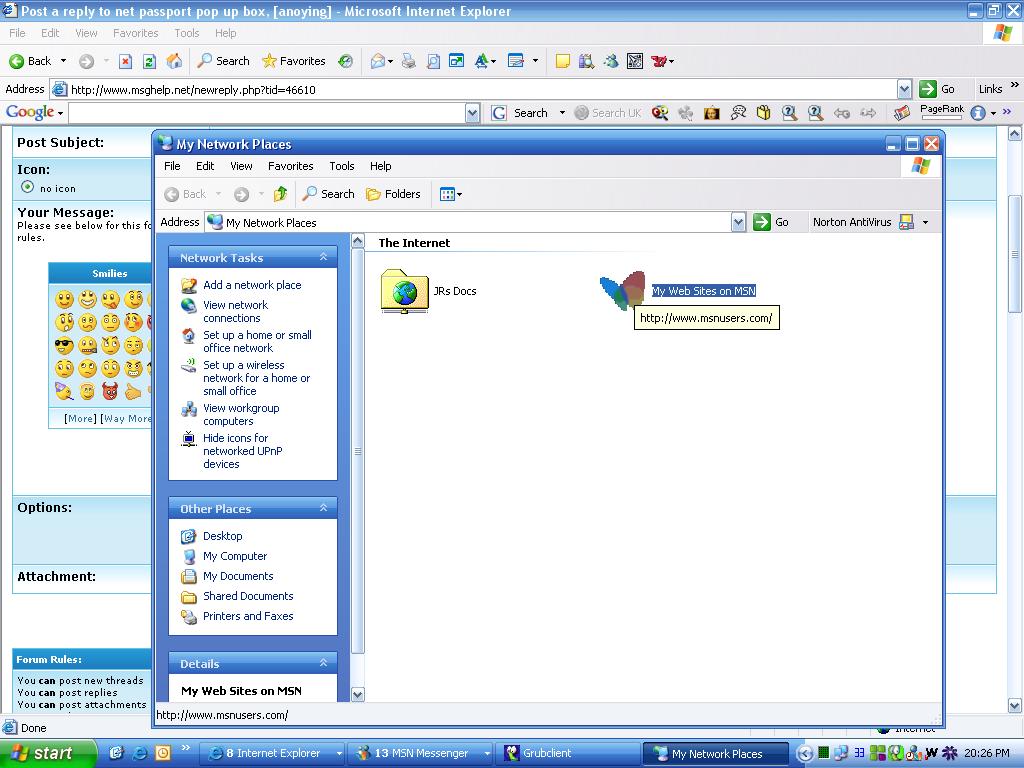 Although, I thought you'd only get the pop-up when going into "My Network Places" and double-clicking on the "My Web Sites on MSN" icon.