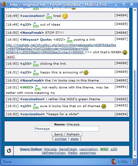 The shoutbox theme is customizable... nothing in this thread requires any work from me. O_o