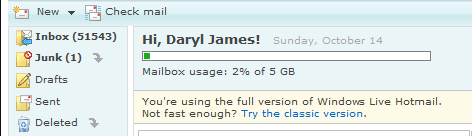 Since when has Hotmail been 5 GB? I thought that it was only 250 MB  .