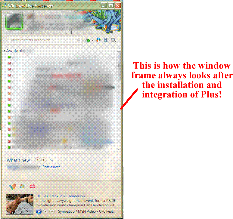 I have XP Professional SP3 x86, Windows Live Messenger 2009 14.0.8050.1202 and Plus! 4.79.0.353 (Beta). However the problem was there also with the previous version, the one that didn't fully worked with the WLM2009 Final.