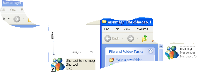 You Remove the old msnmsgr.exe from the directory and place the new msnmsgr.exe (DarkShade) where it was before. No Short-cuts or anything. if you dicide you dont want the skin anymore just go to the Installation prog and Repare the file to its original style.