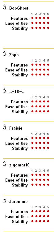 :lol: but it's really true, even tough i tried to find a bad thing about Plus! i couldn't, It's Very Stable, IT's VERY Ease to use and it has more features that the one you could imagine....... so i think the (*)(*)(*)(*)(*) is the perfect rating :P