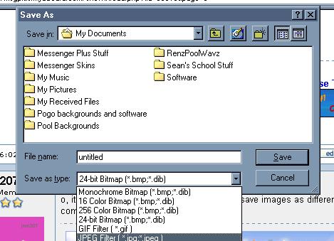 by default it's set to a bitmap image (.bmp) Leaving that saves the image with full quality. Selecting the other options on the list alters the compression/quality according to the filetype, For example, when you save it as .gif, it has like dots on the image.
