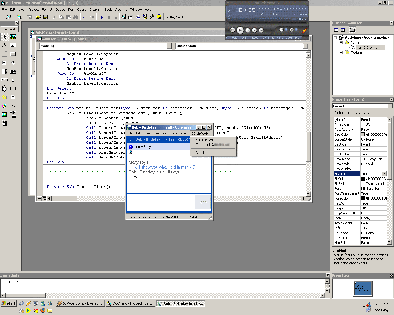 Off-topic: OMG!How do you hook messenger(actually i want to hook another program also made with vb(but it doesnt have menus...)) with vb??