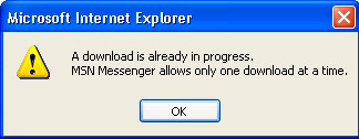 'A download is already in progress. Msn messenger allows only one download at a time'