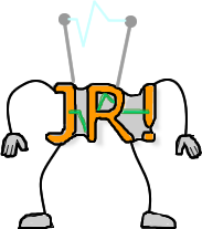 or being simplistic, an orange (#FF9900 :P) "JR!" with arms and legs, and possibly antenna? (a)