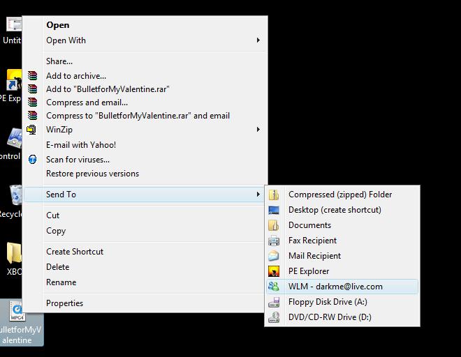 Error: Unable to save shortcut "C:\Documents and Settings\James Ross\SendTo\jamesross_134@hotmail.com\WLM - XX.lnk"..