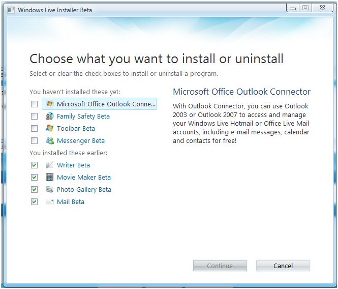 thats how i removed WLM beta, on the top uncheck WLM and click Continue(its kind of confusing how they make you uninstall but it you only have WLM beta installed it should be pretty easy.