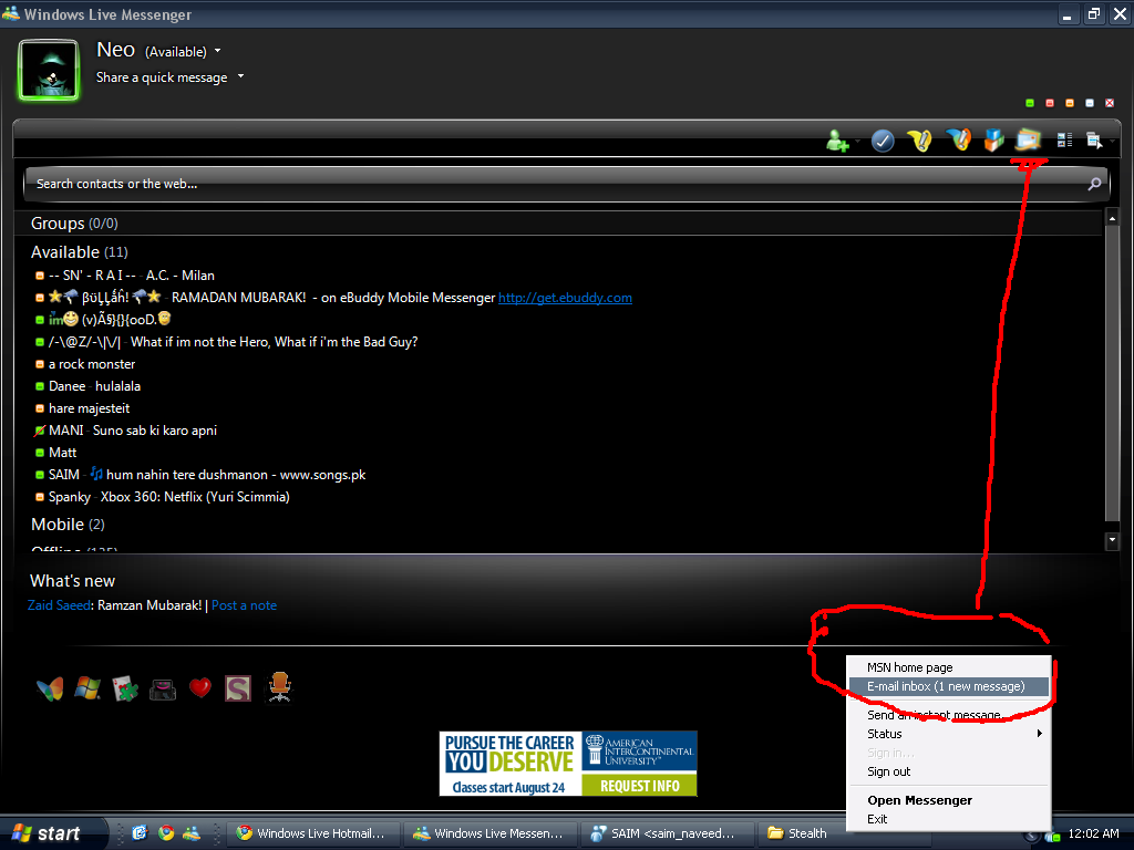 The email button on the top doesn't seem to be showing the number of new emails. As you can see from the screenshot, I have 1 new email but the button on top does not show that. Any ideas?