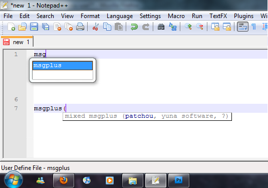 I use Notepad++ as do most. I am trying to figure out a way to create a custom language so I can include the Messenger Plus! events, functions and properties into the auto complete feature.