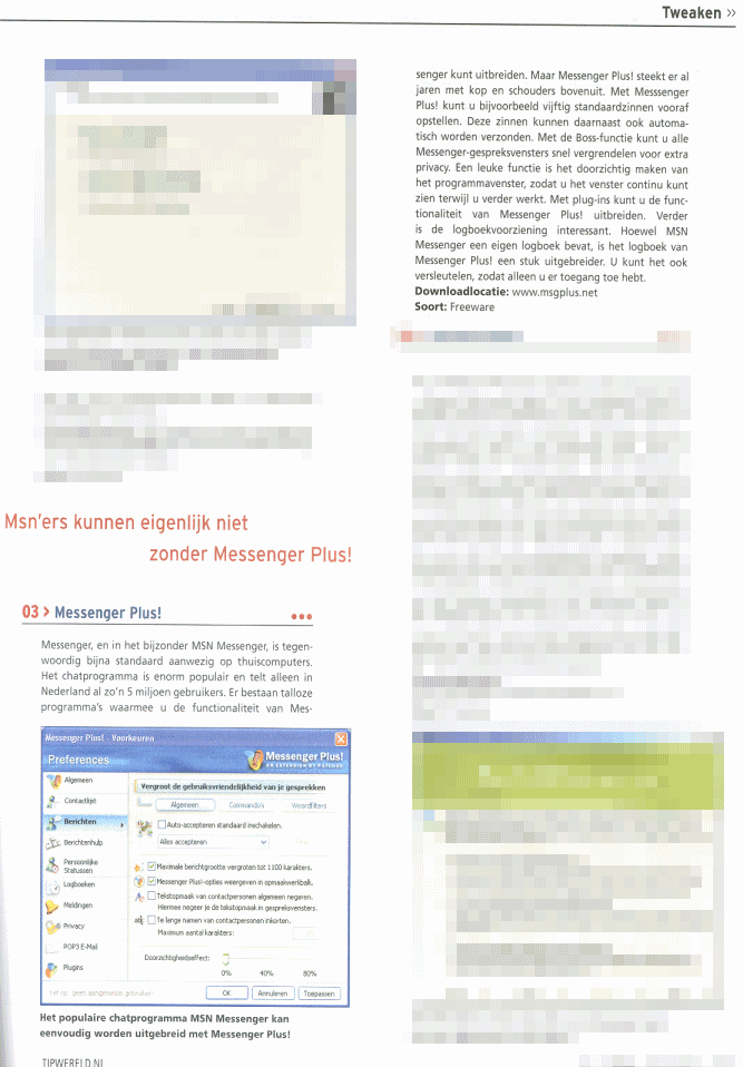It's nice to see Messenger Plus! being mentioned in a dutch magazine..Now I know we're not that far behind when it comes to the world of internet and technology