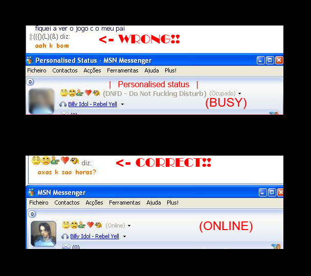 .The emoticons are my nick, and then in FRONT of it, comes the Status. Do you mean within, like inside the { } or inside and after? Because the emoticons come before the status, and not inside the status!