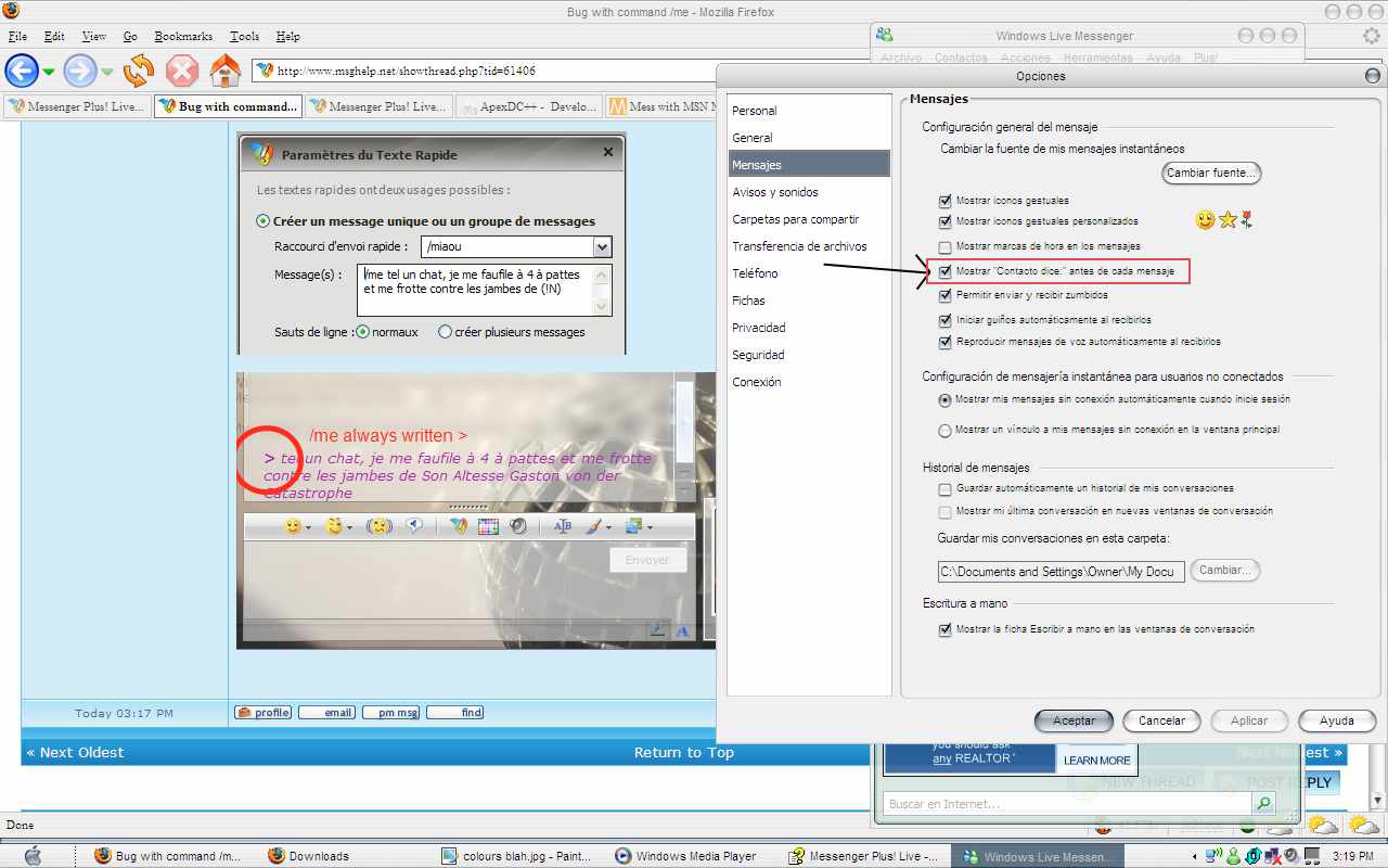 Shoutbox » MsgHelp Archive » Messenger Plus! for Live Messenger » WLM Plus! Bug Reports » Bug with command /me