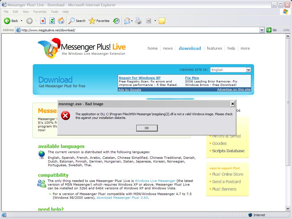 Shoutbox » MsgHelp Archive » Messenger Plus! for Live Messenger » WLM Plus! Help » not a valid windows image????