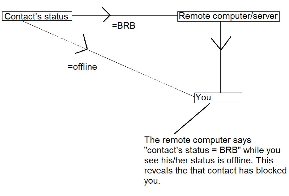 Well, my idea was to have a script which requires the contact ,from who you want to know whether he/she has blocked you, to have it installed too. Just a Status Sender which sends your status to a remote computer...