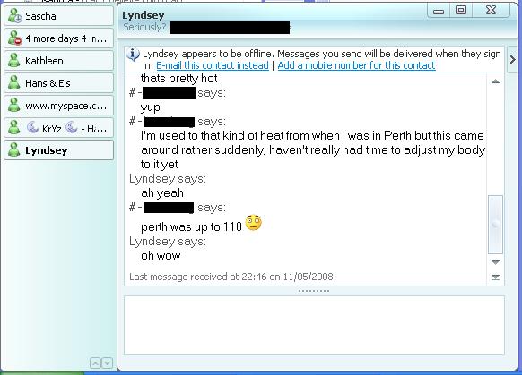 See the attached file for a screenshot of the problem. Obviously, Lyndsey is offline, but the tab on the left shows the user as online.