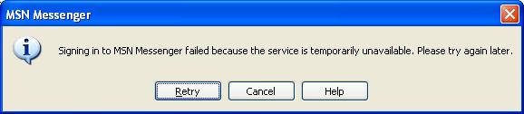 " Signing in to MSN Messenger failed because the service is temporarily unavailable ".