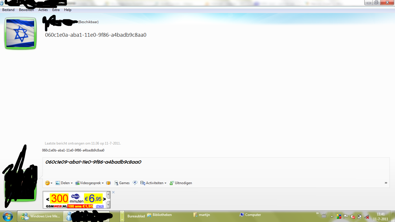 Odd codes like 9c3f5601-3337-11e0-b5da-0050fca4005a in conversation windows (SweetIM)